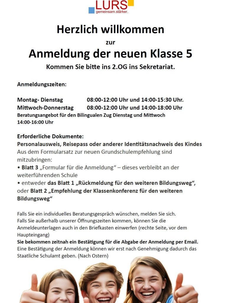 Unser Ziel ist es, dass die neuen Schülerinnen und Schüler sehr gut starten können, die Schule zügig kennenlernen und sich schnell zurechtfinden. Wir freuen uns darauf alle Kinder auf diesem spannenden Weg zu begleiten!